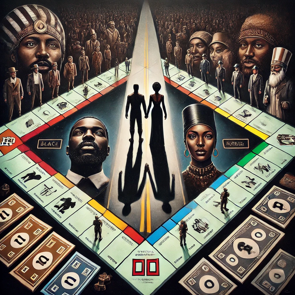 The imaginary war has been taking a toll on our community. As both, man and woman discover their role moving into the new world. the poem was inspired by talking with a black man whose outlook on life is rather interesting. It started to formulate something in my head about the constant competition we have with one another. When the truth is, we need each other. Even through all the individuality, in order to the end game; one must walk the road together for true triumph.